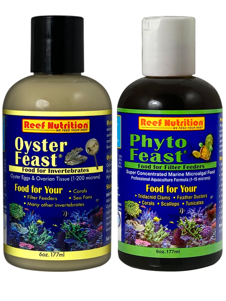 Coral & Invertebrate favorites - Medium 16oz bottles of Oyster-Feast® and Phyto-Feast® LIVE