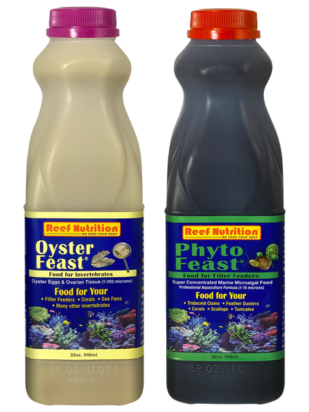 Ultimate food combination for corals and filter-feeding invertebrates. Our most popular duo, Oyster-Feast and Phyto-Feast, available in three sizes: