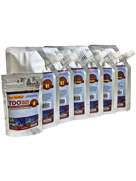 TDO™ Chroma Boost is a granulated and pelleted fish and coral feed "top-dressed" with Haematococcus (which provides an excellent source of astaxanthin) for vibrant color and superior nutrition.